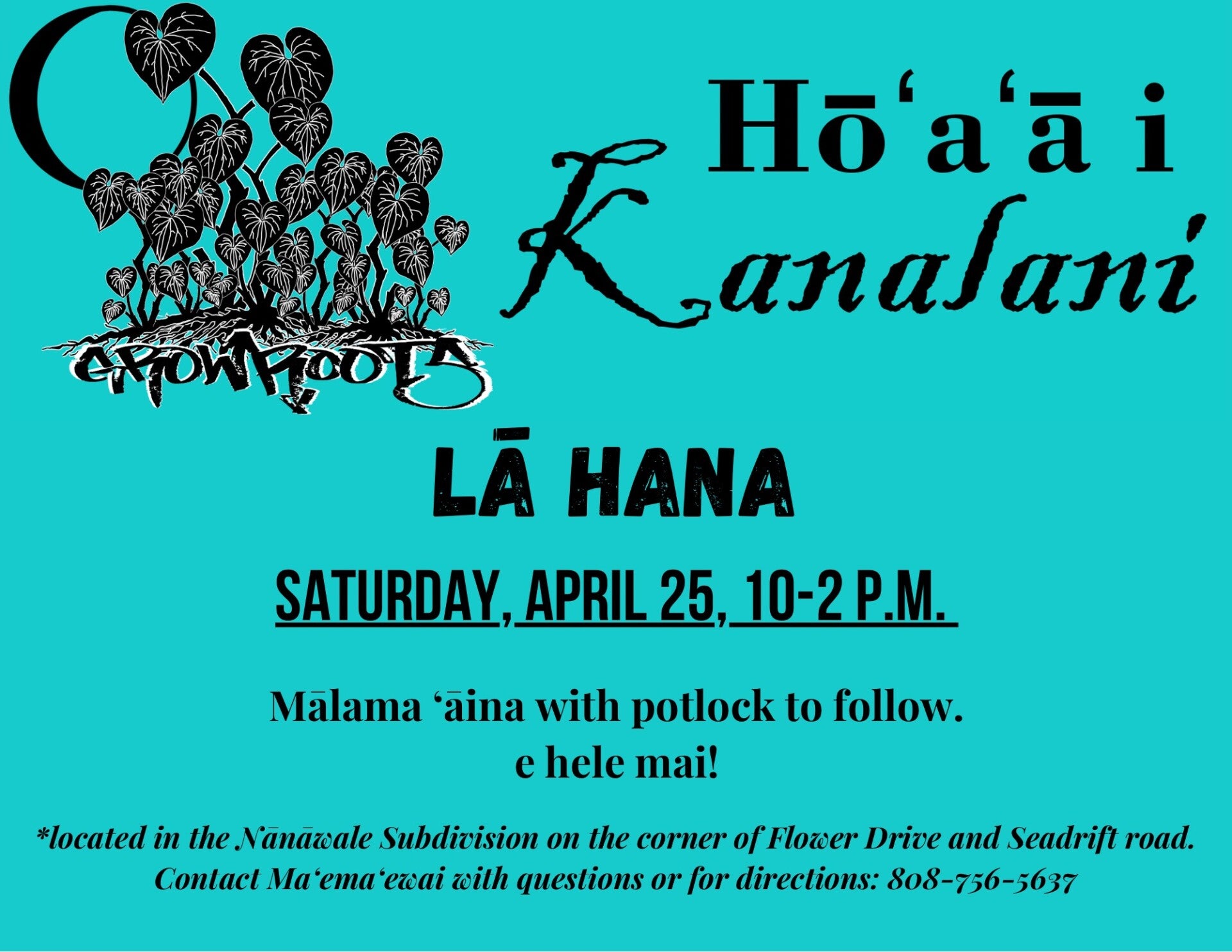 The next event at Hōʻaʻā i Kanalani will be April 25th from 10 -2 pm